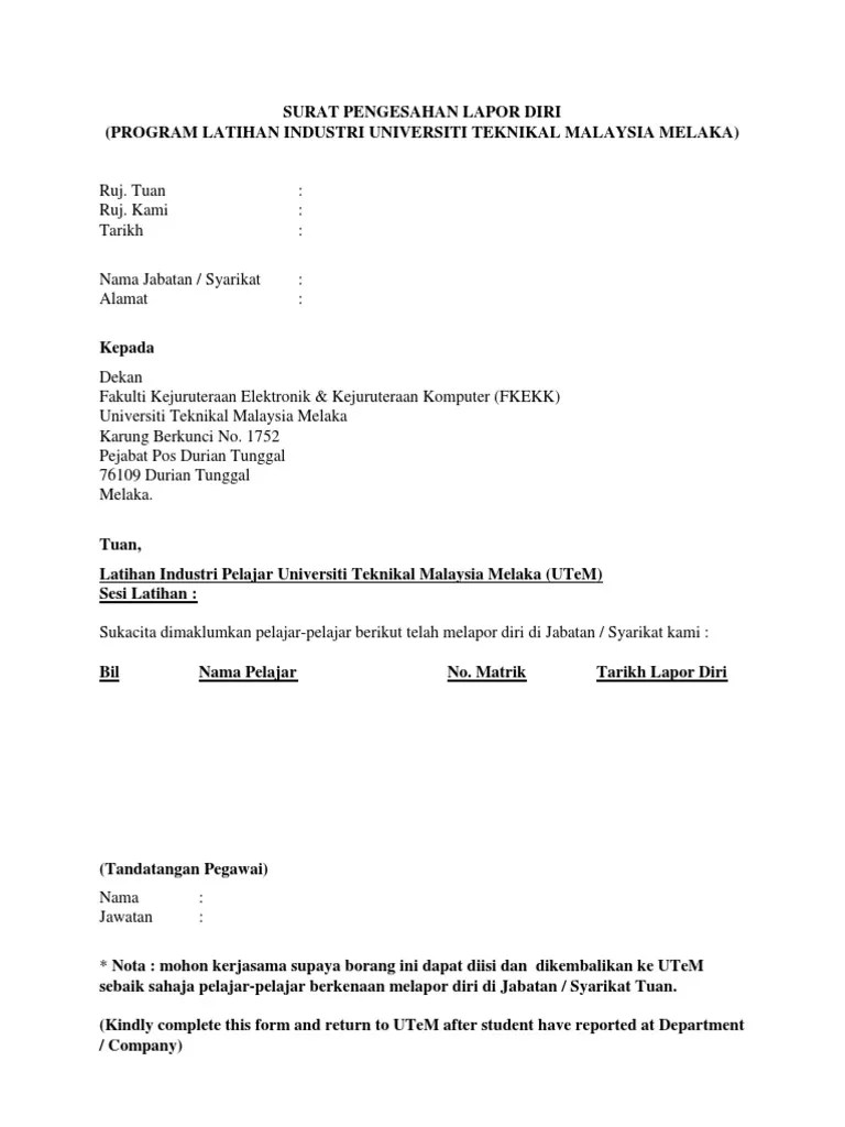 Lapor diri contoh surat rasmi penangguhan. Surat rasmi lapor diri jalan permata 1. Borang lapor diri bertugas di klinik kesihatan.